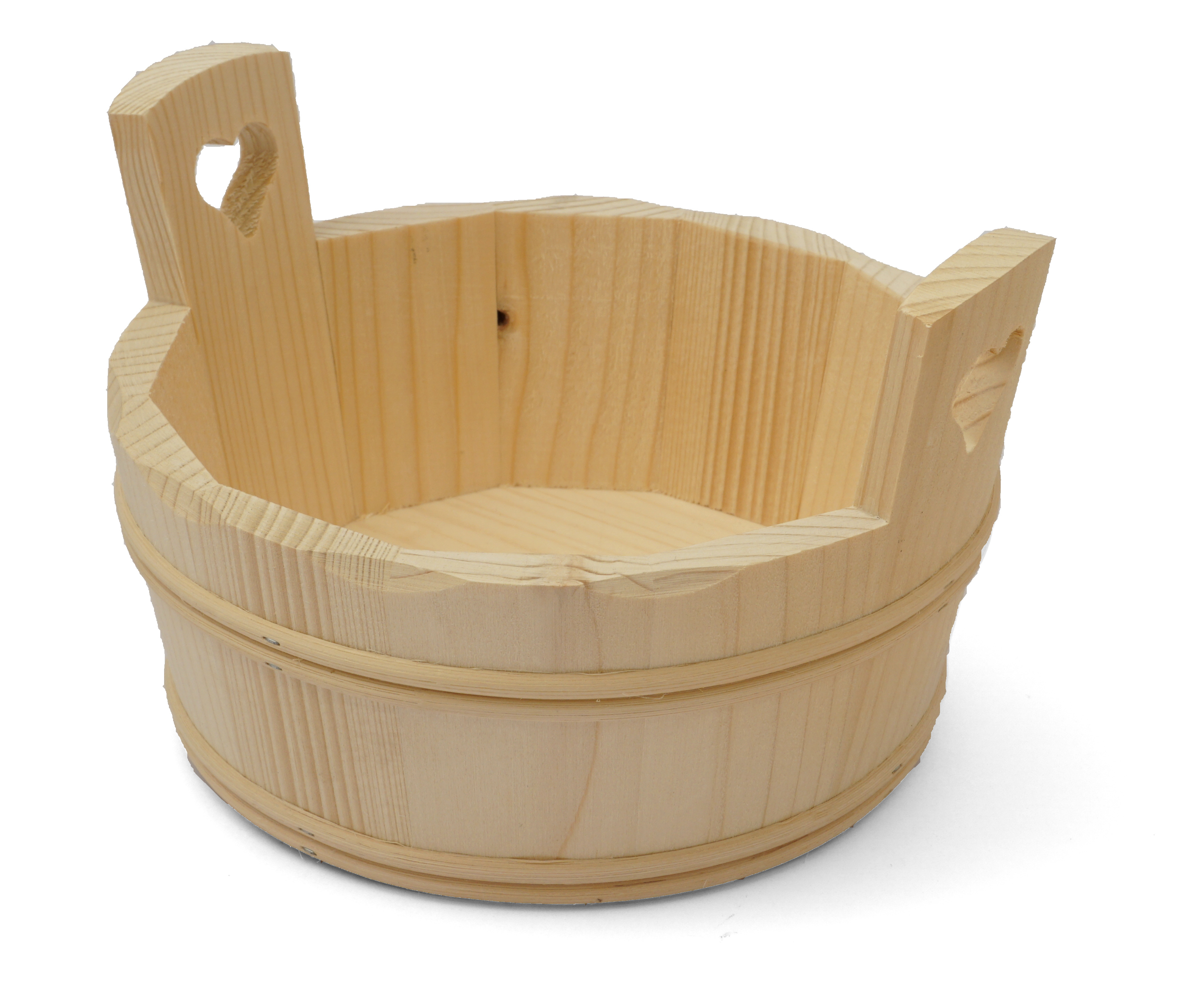 46.3016 Wanne rund mit 2 Henkel Herz Fichte, H 8,5/13,5cm, D 20cm